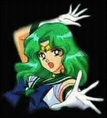 Michiru transforms into the Elegant Fighter, Sailor Neptune. Michiru is a quiet, artistically inclined young woman with a soft sense of humor. She holds herself elegantly, which attests to her beauty, and is from a wealthy family. Her mannerisms can be described as a mature, lady-like, or worthy of a princess. As Michiru, her empathic principles often predominate. As Saior Neptune, however, she tends to be more rigid and distant. Her coldness may stem from a resentment of being a Sailor Senshi. Michiru attends tenth grade at Mugen Gauken High with Haruka. She plays the violin professionally and enjoys paintion and swimming. Michiru owns a mansion by the sea, and enjoys visiting aquariums and art galleries. Haruka and Michiru share a apecial romantic bond, though they will not admit to the other Senshies that they are lovers. Sailor Neptune saves Sailor Uranus's life a number of times by putting her own life on the line to protect her beloved. Michiru is more passive than Haruka, but is certainly not any weaker, either as Michiru or Sailor Neptune.