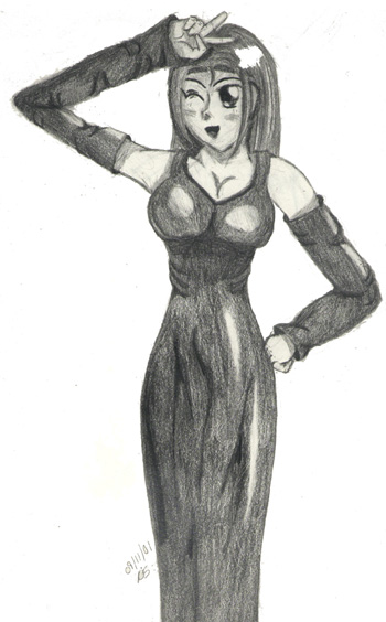 These are pictures of Nicole (right) and Amy (left) in our DBZ fic. Both were drawn by Kujakou. (With a little help from me).