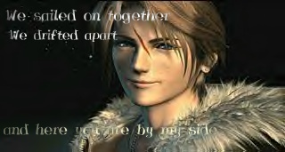 ^-^ Isn't that a cute pic! Alright well, Squall's reserved, and quiet. Usual response: Whatever. He has his *Eyes on* Riona.