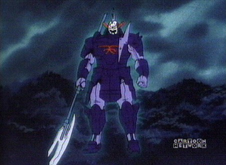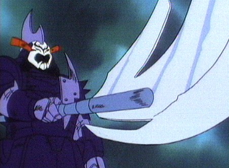 Saranbo is a bit stronger than the Dark Warlords when first seen. He has the skill to fly hang upside down like Dais, but in the sky, and the ability to control water associated things, such as seaweed. The pole axe he wields is his only weapon, which he uses for his attack, the "Wave of Destruction". The "Wave of Destruction" is only usable near water. Saranbou somehow has the water rise up. Following, he takes a slice out of it, sending forward a large blast of H2O.