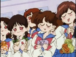 Girls waiting to offer transfer student Seijuro their lunches.