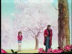 Momiji and Kusanagi under a cherry tree; it seems that Momiji is trying to tell him that she likes him, but all that seems to be coming out is the name of famous Sumo wrestlers... go figure...