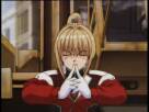 under the covers and her butt up in the air. Momiji gets embarrassed.