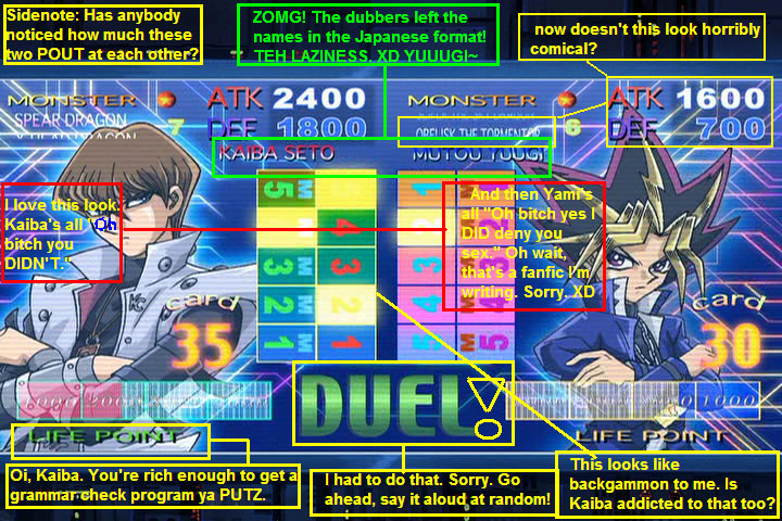 Yami: Kaiba, once again your ridiculously over-inflated ego blinds you to the truth! But since you insulted me so much, I'm going to ignore my own arguments and finish this duel just to pummel you! You're goin' DOWN, biatch!