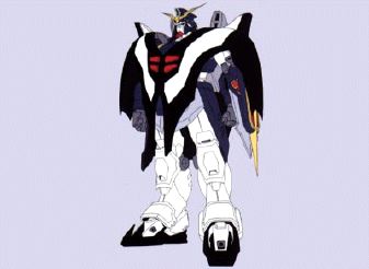 An improved version of the original Gundam Deathscythe, adapted for space combat. The Deathscythe Hell's "active cloak" uses the same defensive technology as the Mercurius's planet defenses, and doubles as a maneuvering system; when opened, it bears an intimidating resemblance to a devil's wings. The Deathscythe's hyper jammers and beam scythe have also been upgraded for its new incarnation.
