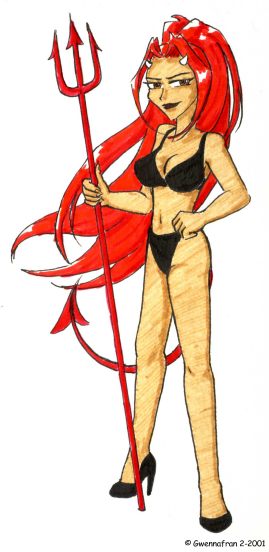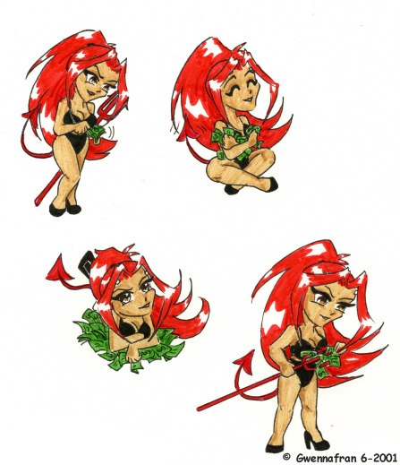 Nonchibi Stereotype Devil 08-3 2000: Crappy pic. I wanted to make her out of chibiform to match the pic with the nonchibi angel. But it didn't turn out very well.