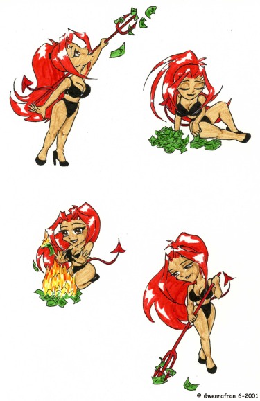 Stereotype Devil with money 2 6-26 2001: More pictures with a moneyloving devil.