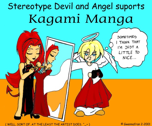 Kagami Manga 02-12 2001: Stereotype Devil and Angel doing a little comercial for Kagami Manga. ^^