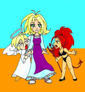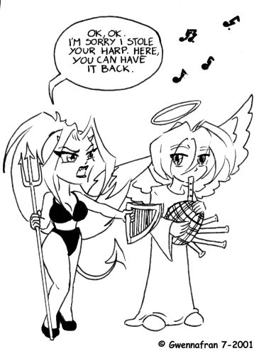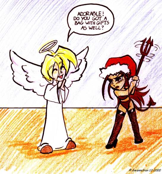 *NEW* Stereotype Devil and Gabriel 2-9 2002: Hehe, two strong ladies... I'm planning to introduce the archangel Gabriel sooner or later. And yes, she is female. *EG*