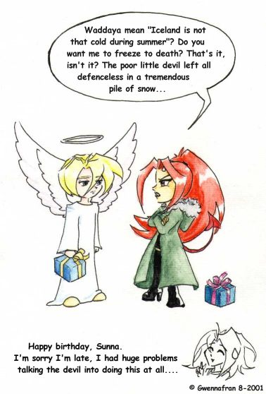 Gift to Sunna 8-17 2001: A Birthdaygift to my friend Sunna. She lives in Iceland in case you should be in doubt. ^_~