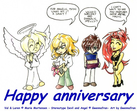Val and Laren giftart 7-3 2001: A gift for M-chans two comiccharacters Val and Laren. Made at the comics two years anniversary.