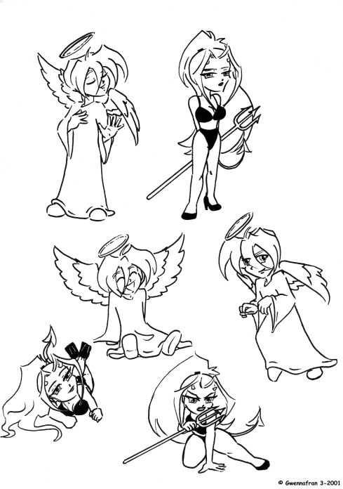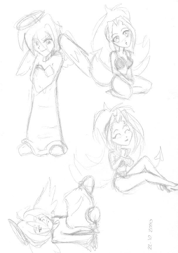 Stereotype Devil and Angel sketches 11-09 2000: Me having fun playing with different expresions. ^^