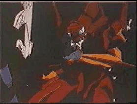 Eva 02 ready to attack the angel (the veiw is from inside the angel's mouth!)*