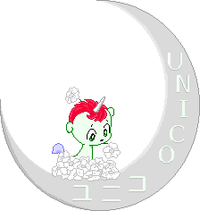 Unico and all related characters © Tezuka Osamu Productions Co., Ltd., Mushi Productions. Artwork of Unico movies and publishing of Unico manga are partly © Sanrio Company Ltd (Manga magazine "Ririka"). All original content © 2000, 2001 Holly Lyons. In no way is this site part of Sanrio Company Ltd. or Tezuka Osamu Productions Co., Ltd. No profit is being made off this site. This site is a non profit fan creation.