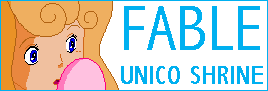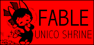 If you want to link to this page, of course you can use just a text link, but you may use one of these banners, but they MUST be uploaded into your server, or a default image from Angelfire will be shown. Please just add BORDER=0 and ALT="FABLE: Unico Shrine" to the img src html in the parentheses, so the banner will have no border, and when touched, will say "Fable: Unico Shrine"