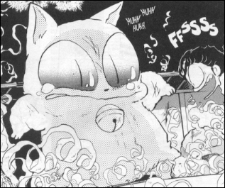 Of course with Ranma's intense fear of cats this only makes him revert to using his Cat-fu on the Ghost Cat. Finally he sees that he is no match for Ranma and decides to look for a fiancee elsewhere.