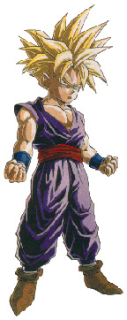 SonGohan- Son of Son Goku and ChiChi, he appears the first time at the age of 4, about the same time that Raditz appears (beginning of the anime series Dragonball Z). Having been given the same name as SonGokuu's "Step-Grandfather", SonGohan can become more powerful than his father (because he is half-saiya-jín half human -->hybrids are stronger). However, ChiChi is always telling him to study, therefore, he never really explores his fighting capabilities or gains the taste for a good fight. Gohan has his first fight training with Piccolo, after Goku's death. During the fight against Raditz, Piccolo decides to train Gohan and sort of allie with Goku against Vejiita and Nappa. Though Piccolo is very harsh with him during the training, Son Gohan and Piccolo become friends, being Piccolo an idol to Gohan (Piccolo finaly got killed by Nappa in an atempt to protect Gohan). This motivates the participation of Gohan in the Quest for the Namekian Dragonballs in a chance to revive Piccolo. Son Gohan is often seen during part of the series using clothes much like those worn by Piccolo.