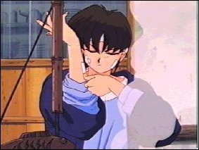 An absent-minded boy who lives with his grandfather in the forest setting monster traps. Shinnosuke(above) and his Grandfather(below) both live in the forests of Ryugenzawa. When Shinnosuke was a child his grandfather worked at an exotic zoo, but one day all the animals became huge, and the area changed, but Shinnosuke and his grandfather stayed in the new forest to protect the nearby villages from the big animals. As a child Akane had got lost in the woods, and was saved by Shinnosuke from a huge platypus and he got scratches on his back for his trouble, only to be carried to his house by Akane when he fell into his own trap. Shinnosuke now depends on the "Water of Life" to cure the deep gashes that plague his life. One of Shinnosuke's major flaws is that he has no short-term or long-term memory. He often forgets names and people altogether. He gave a special whistle to Akane before she left. In the present Akane sees a TV broadcast about the animals of the forest, answers a call to the dojo asking for help, and then remembers the incident from 10 years ago. In her old stuff she finds the whistle and leaves the dojo to return the whistle and to thank Shinnosuke for saving her life, and Ranma is sent after her to bring her back. When Shinnosuke reencounters Akane, he falls in love with her and this puts a serious strain on her relationship with Ranma.
