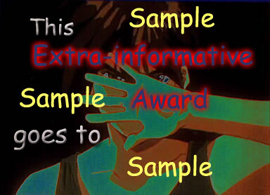 If you have a site with character descriptions (not just stats), episode guides, and tons of background info, this award will be a shoe in.^^ awarded: 3 times |