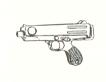The CLMP machine Pistol uses a .45 cal round had has a pull out stock. It is used by the U.N. Armed Forces.