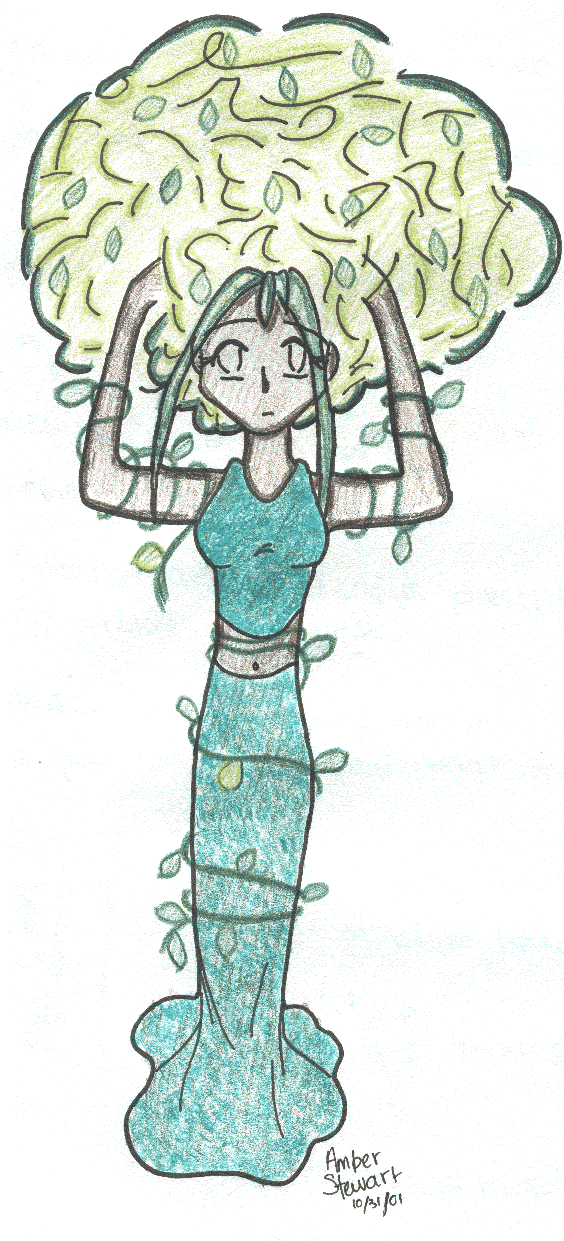 Comment: I dunna.... I was looking at the willow outisde my window, and thought "What wicked hair that would make." Call her a tree sprite if it makes ya feel better... she has a sorta sad, thoughtful look to her.... 8/5/01