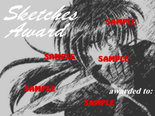 1. must be RK related (of course!) 2. pages at least 90% "under construction" would not be allowed 3. these awards are easy to get .... NOT! I'll only give the award to those who really deserve it. If you applied and didn't receive any award, you could still try in the future after you've fixed your site and think it's already good enough. 4. I'll give only 1 award to each webby. If you applied for all (yes! you could do it), I'll decide what award your website falls in (of course if you deserve it only). Also, if you applied for a certain award, but I think another award is more appropriate, then I might give you the other one. 5. the looks of an award may be changed. For example, if your site was awarded the originality award, and it's about Shishio, I might change the pic of the award to Shishio's pic, instead of the original kenshin-gumi. But if you wanna the original one, just tell it to me in your form (see below!)