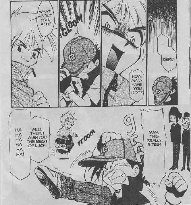Ash meets up with Brock after the gym battle... Sabrina sure is a lot nicer in the manga
