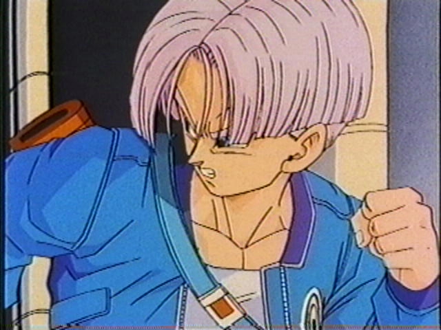 Trunks first appeared after the Garlic Jr. Saga. Trunks had a terrible past and as a result, he became more disciplined and mature then his predeccesor Chibi Trunks. When Trunks was a baby, the androids 17 and 18 had killed all of the all of Eath's Special Forces except for Gohan. To save the rest of the world's inhabitants he is forced to train and fight back. Trunks is the son of Vegeta and Bulma and sister of Bra (a character in GT who acts like Marron but more considerate of other peoples feelings). Trunks is the only son therefore Bulma became very protective of him. Trunks had only reached 2 stages of the legendary transformation, SSJ. The death of Gohan, his master (in the future), trigger his first form but he was still not strong enough to beat the duo 18 and 17. Searching for new hope he was told by his mother that if only Goku was there to help they wouldn't live in fear. Trunks beleived that he would learn something from Goku so he decided to go back to the past and save Goku although he thought the mission was pretty stupid. But that wasn't the only reason for him to venture into the past, he also wanted to see how his father was like.