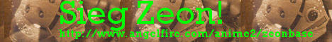July 22, 2011: Welcome! Today this site is exactly eleven years old. Can you tell from the decor? I have not updated anything since 2007; please accept my apologies for ten year-old grammar and spelling errors. Many old sections have been removed, but Sieg Zeon! still hosts one of the most robust and complete lists of Zeon mobile suits available on the internet, with images and statistics for them all. As for the tiny Zeon vehicle section... I've left it up solely because there's a cool picture of a Zanzibar in there.