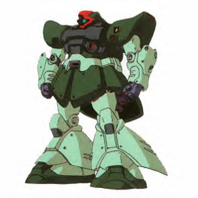 Webmaster's notes: Yet another ridiculously high preformance mobile suit produced by the United Maintenance Plan for upgrading Zeon mobile suits. In the usual fashion of the UMP, which also produced the Zaku FZ and Gelgoog Jaeger, the Rick Dom II is supposedly a refit, yet seems to be built, externally, at least, with a completely different set of parts than the standard Rick Dom. In any case, the Rick Dom II's new array of fuel gobbling thrusters warrants two propellant tanks extending from its back, which make rather unfortunate targets in combat. The Rick Dom II also gained an upgraded version of the 360mm Giant Bazooka, but lost its heat saber, making the mobile suit rather vulnerable at close range. The Rick Dom II was perhaps the most heavily produced mobile suit of the UMP, but despite high preformance, it was far from perfect.