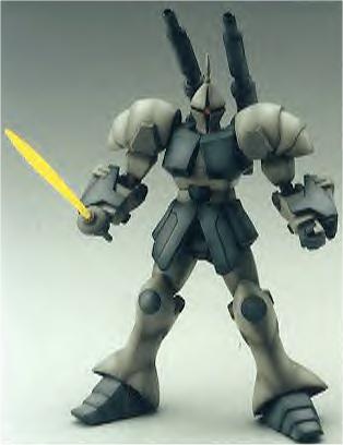 Webmaster's notes: Not much is known about the Gyan Cannon, which was presumably produced in extremely limited numbers. It was for the most part superficially identical to a standard Gyan, save for different shoulder and skirt armor and cannons of unkown shell size mounted over its shoulders. It also mounted a different thruster backpack, though it is unknown if this is more or less powerful than the standard Gyan booster. As is the trend with Zeon artillery mobile suits, it was equipped with missile launchers to provide itself with midrange fighting capability. It could also use the standard Gyan beam saber.