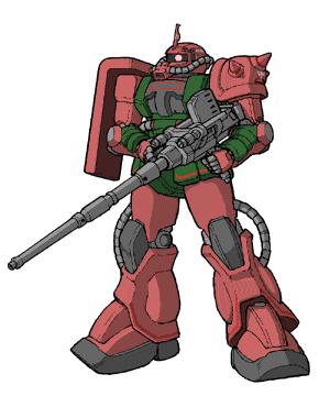 Webmaster's notes: The MS-06Fs was produced as Garma Zabi's personal Zaku II. It was equipped with four machineguns mounted in its head, and may have had highter thruster acceleration than a standard Zaku. Because the mobile suit was given its own model number, its possible there were additional units produced for other celebrities and/or aces.