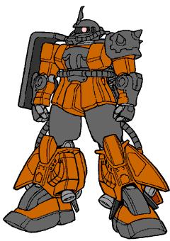Optional hand armaments: 120 mm machinegun; 280 mm Zaku bazooka, can be stored on rack on rear waist armor; heat hawk, can be stored on waist armor rack