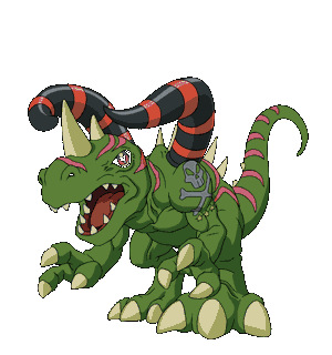 Meet Tuskmon. A Champion Level, normally gentle Digimon, but watch out, avoiding his razer-sharp horns is no easy tusk! (hehe, sorry ^_^)
