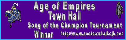 ![]() The Official Age of Empires Town Hall AoC 1v1 Random Map Song of the Champion Tournament will be held June 3rd - June 28th. The only rules is that it must be a random map game and it must be 1v1. There will be 16 players in the tournament, and the winner of the tournament will get to display the banner above anywhere they want. Email me immediately if you want to play in this tournament.