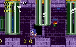 Help Sonic fight hordes of metal maniacs and do the loop with the Super Sonic Spin Attack. Speed down twisting tunnels and swing over dangerous booby traps. Leap across lava pits and dodge burning rocks. Then splash through the chilling waters in an underground cavern. And if you're lucky, you can warp to the sercet zone where you spin around in a floating maze! Your greatest challenge lurks in a sercet lab where you come face to face with Dr. Robotnik himself!