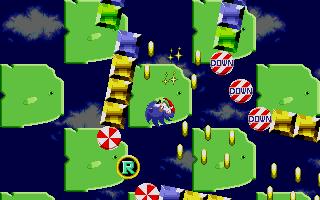 If you collect 50 Rings, you can warp to the Secret Zone where you'll ricochet off multi-colored blocks in a 360° rotating maze! There are six Secret Zones. In each Zone, your goal is to touch the Chaos Emerald.