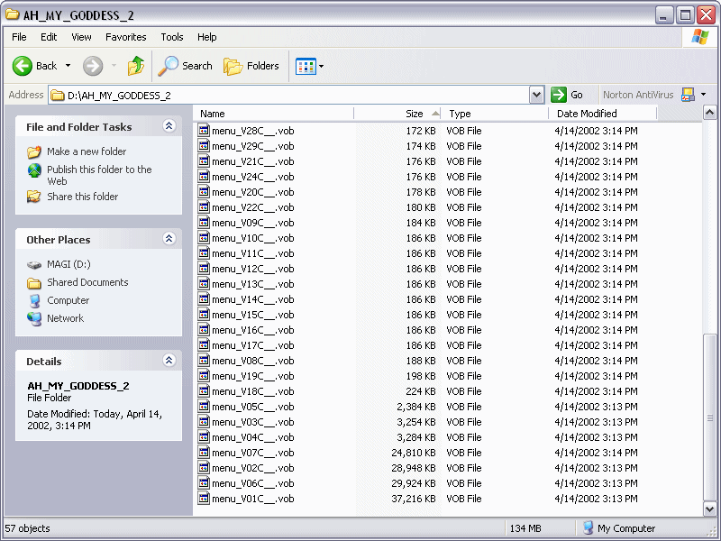 Congrats, step one is complete. Next we need to do some organizing to make our lives easier. Go to your main folder, there should be a bunch of .vob files named "menu_V01C__.vob", "menu_V02C__.vob" and so on. These are all of your individual menus. If there are a lot, god help you, if there are a few, you got lucky. Anyway, we need to separate these and put them in the Motion Menus, Transitions, and Stills folders that you created at the beginning. The easiest way to do this is by clicking "arrange icons by size" and "view details" in explorer. The folder should look something like this;