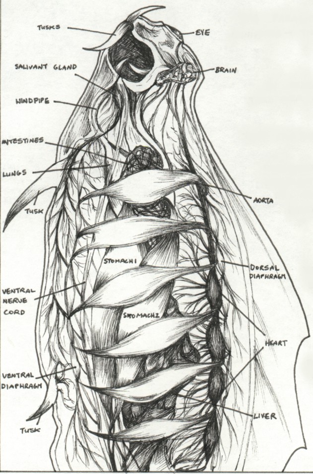 This is an anatomical diagram of a parasite, an alien species which moves in swarms throughout the galaxy, devouring everything in its path.