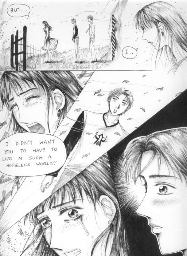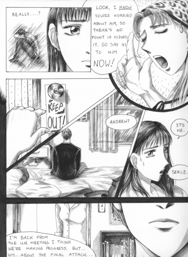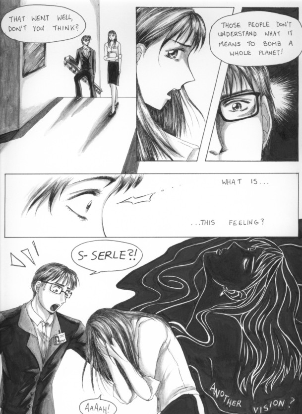 Worn out, Serle confesses that she has failed Andrew, saying that she just wants to die. Andrew is shocked, and reaches to comfort her. She accepts his kindness willingly and thankfully as images of Dawn flash through Andrew's mind. He tells her that he understands now that she was never trying to hurt him. Serle's wishes for a safe planet simply collided with Andrew's unconditional love for his girlfriend. "I'm sorry," he whispers. Suddenly, Serle's mother appears and with a flash of light shining from Serle's marks, she utilizes her hidden power...
