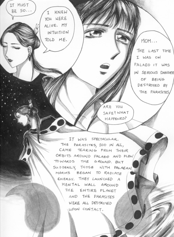 As she loses unconsciousness, Serle wonders if she has died. "No," a familiar voice says. It's her mother! She reveals that Serle's mind has somehow left her body and channelled her dreams, through a wormhole. This leads Serle to the startling conclusion that she landed on Earth in the first place through a wormhole in space.