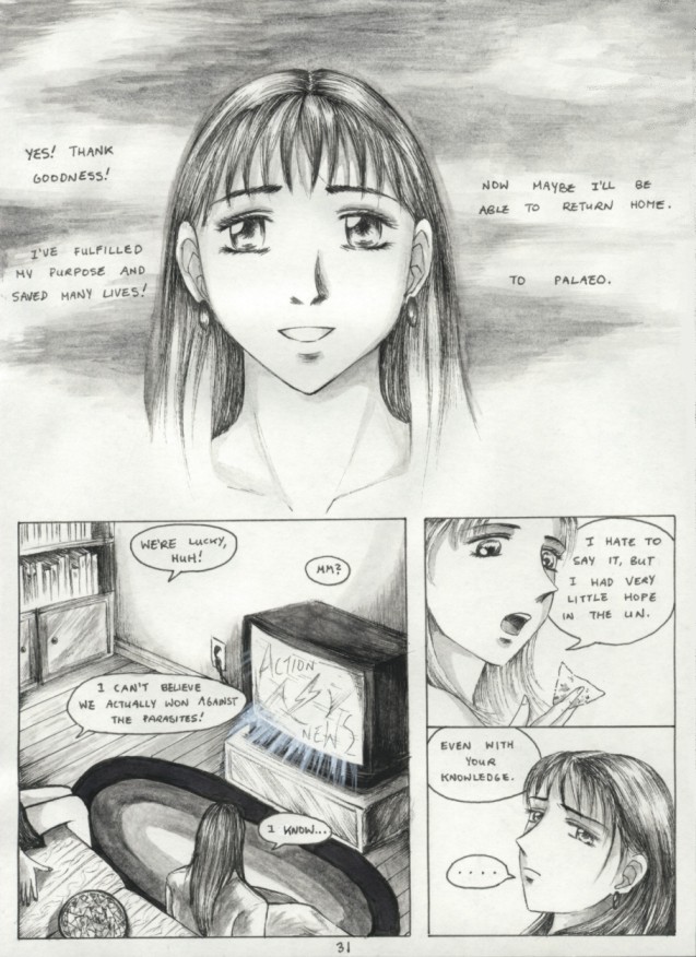 Well, that's the end of Armoured Prophet 2! Now, I'll begin work on the final issue. What will become of Serle's prophetic gift? What of Andrew's resentment towards everyone? What is the meaning of the Palaean marks? Can Earth be saved?? Find out in the next issue!