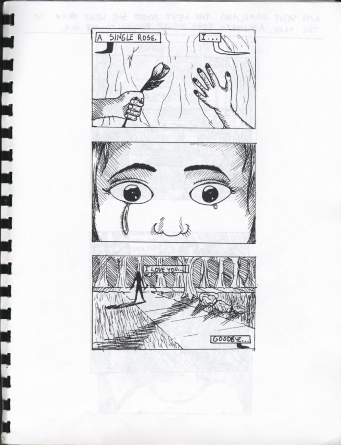 I've been creating comic books since grade seven, when I came up with a story that I couldn't show to the world any other way. This grew into a vampire thriller created in 1997-98 called "A Single Rose." I sold 20 copies at my school (Lester B. Pearson School for the Arts) during the annual Choral Collage and Art Show. It's the story of a newly-made vampire named Amy who discovers that the vampire who made her is also her soulmate. The quality of art is embarrassing to me now, but I suppose it was pretty good for 12 years old. Take a look at these: