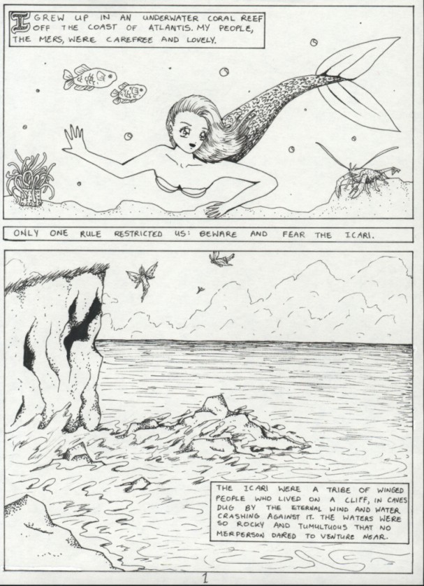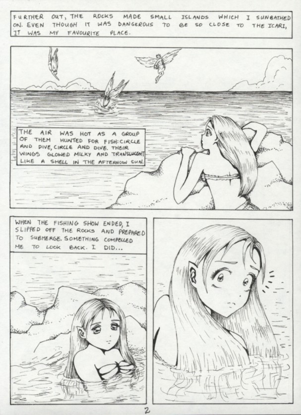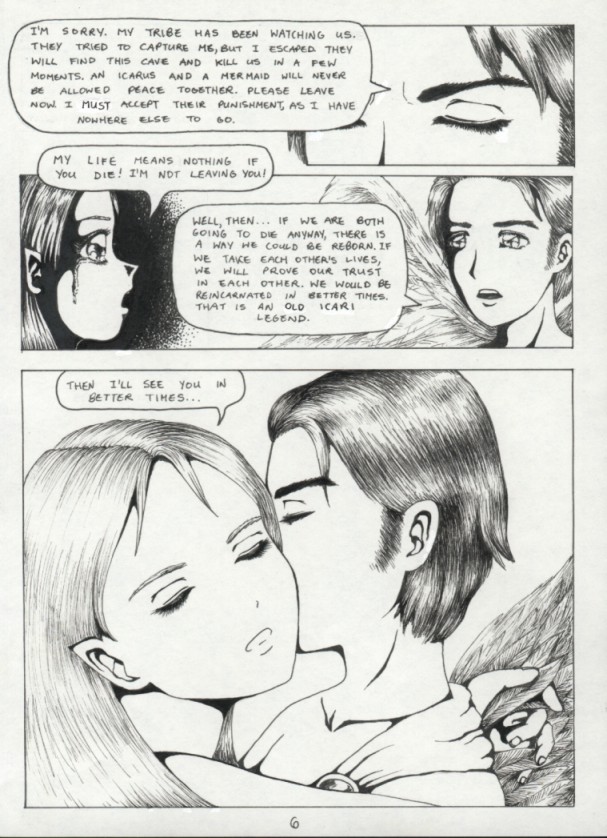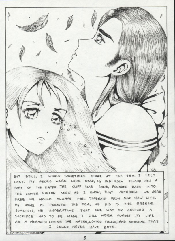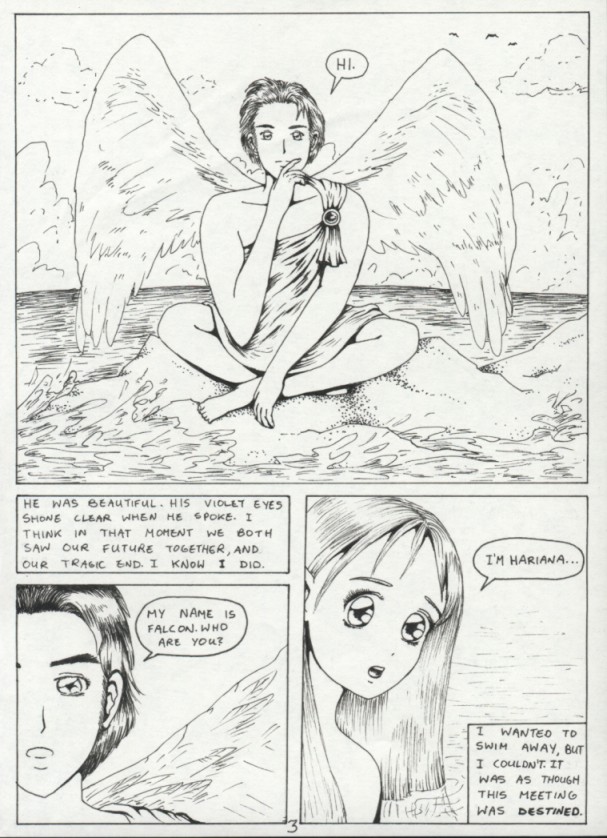 I always wanted to write a comic like this. It's short, tragic, and mystical. I loved mermaids as a little girl and the idea of one falling in love with an angel is intriguing. Because the story is only 8 pages long I have decided to include it in its entirety. It is featured at the back of my new manga, Armoured Prophet. Thanks to my friend Asia for coming up with the lovely title.