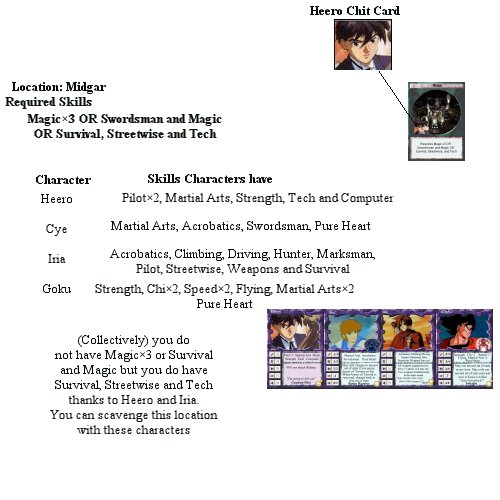 Scavenging is simple. For Example lets say you have Goku, Iria, Cye and Heero at Midgar.