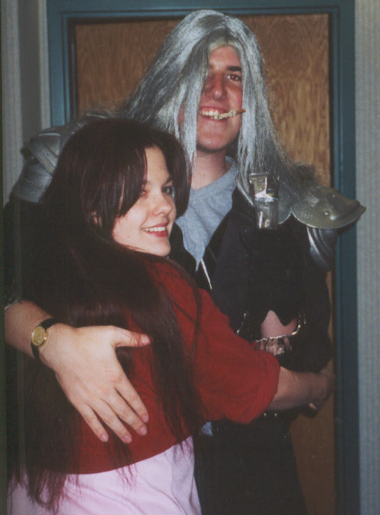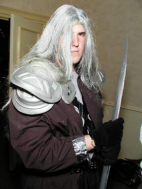 | This costume belongs to my friend Paul. He's been Sephiroth for some time now. He's one of the best I've seen!!! Paul went to Nekocon 2001 as Starscream, which dominated most of his time. Paul gave me the honor of being allowed to don the Sephiroth costume. It was mainly for our cosplay, but he let me walk around afterwards. I ran around the place asking everyone to hug me! I think everyone did...except for the head security guy and some old guy who wasn't even at the con, just at the hotel...poor guy! ^^;;; But anyways....I loved being Sephiroth soooooo much that I'm going to make my own costume!! I only hope that I can live up to Paul's expectations!! |