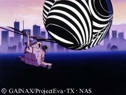 This strange being is known as Leliel the twelfth angel. His shapely part has an AT Field, but he also has a deadly shadow, that absorbs EVA Unit 01. While inside, with the only support being the swiftly decreasing life support system, Shinji has a mind trip, and his mother, who's soul possesses Unit 01, helps Shinji, along with 00 and 02. When the angel absorbs something into its shadow, it is transported to an alternate universe, which is inside the angels "body." |