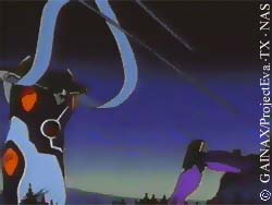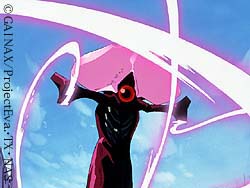 Arael the fifteenth angel, also lurks in space, much like Sahaqiel. When EVA Unit 02, attacks it, it attacks Asuka's mind directly, causing her to go "crazy." This angel was winning, so NERV was forced to use the Lance of Longinus. EVA Unit 00 hurls it deep into space. The lance zips right through Arael's AT Field, and destroys it immeidiatly, but NERV has now lost their strongest weapon in space. |