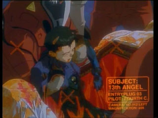 Shinji's forced to fight him but he doesn't want to ( he doesn't know tht Toji's inside the eva...)