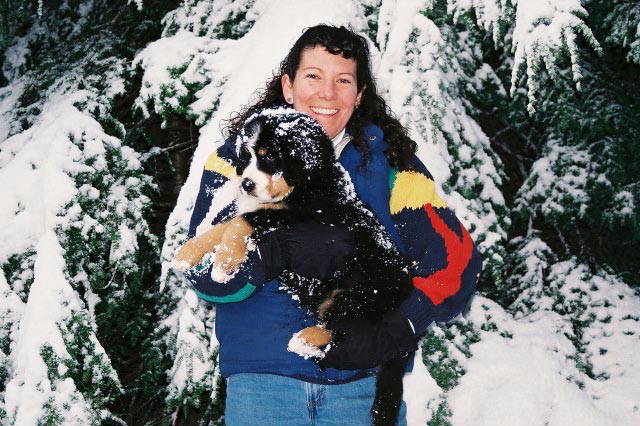 Puppy Kenai in the snow with Mom